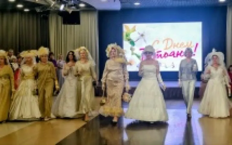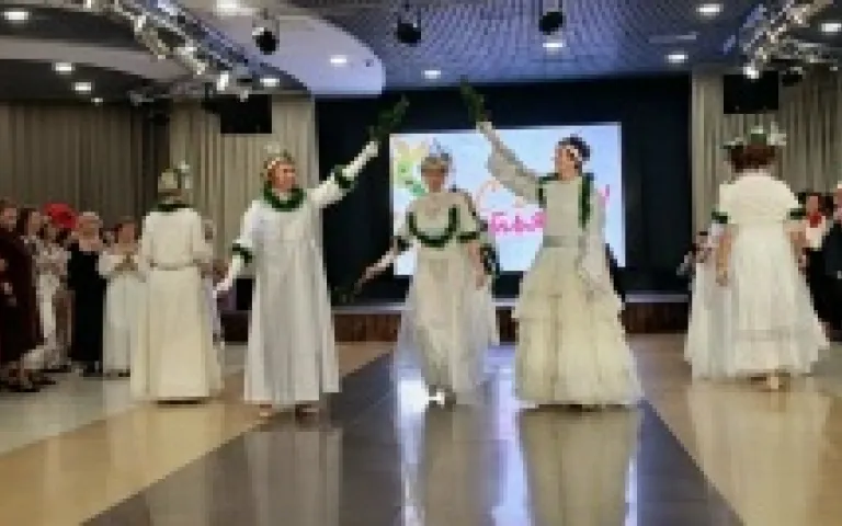 После этого Татьяна Алексеевна пригласила всех Татьян подойти к сцене. Откликнулись16 дам с таким именем, которые сделали круг почета по залу под дружные аплодисменты, а потом хозяйка бала – главная Татьяна этого мероприятия – каждой вручила открытки с отличными пожеланиями.