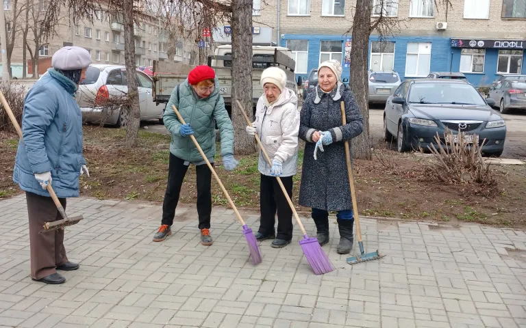 Все работали дружно: кто-то чистил дорожки от прошлогодней листвы, другие подметали дорожки. Весело и задорно прошел сбор мусора отмечают ветераны.