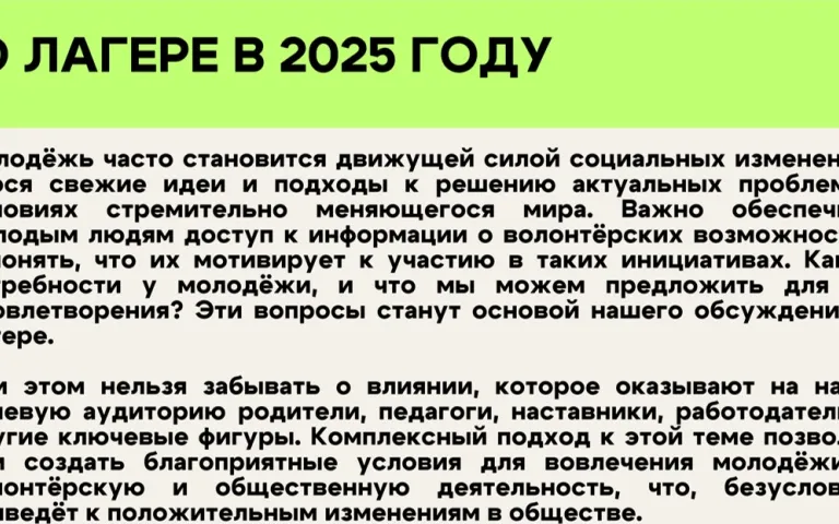 Волонтерский образовательный лагерь «54.вол» в 2025 году!