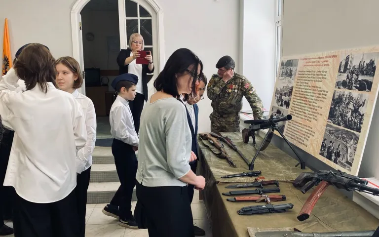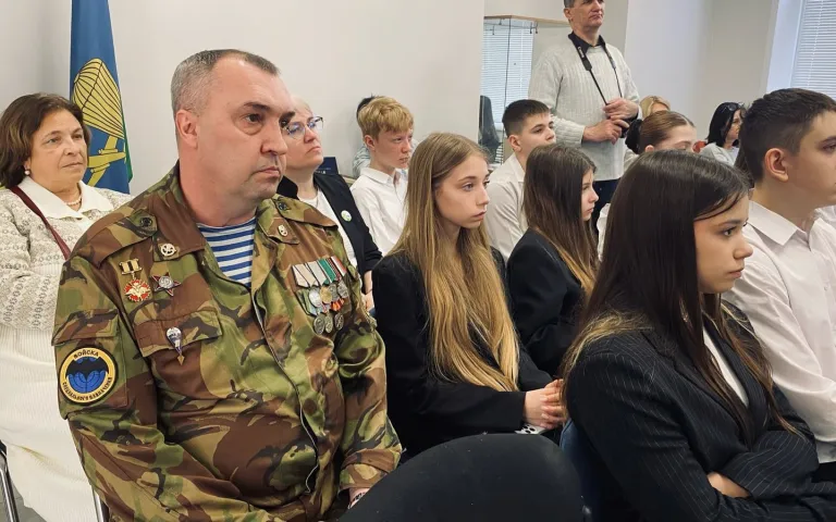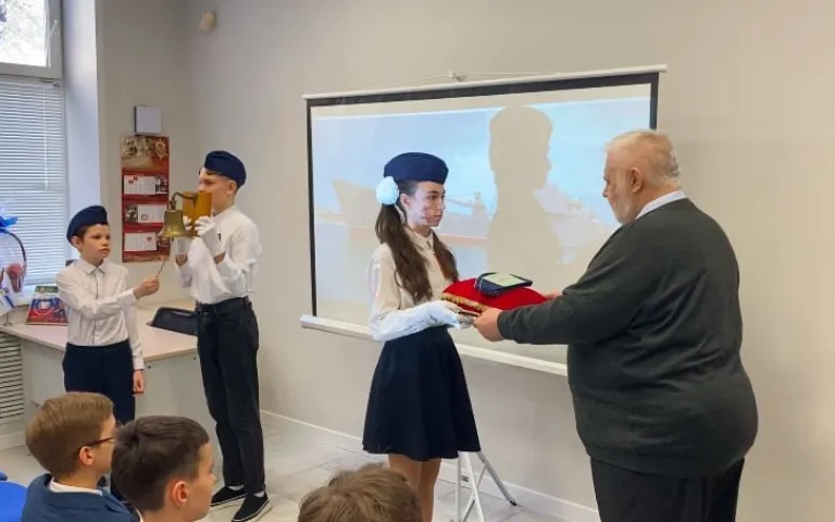 18 февраля 2025 г. на площадке музея Новосибирской региональной общественной организации «Ветераны силовых структур Родина» (НРОО «ВССР») для учащихся школы №29 состоялось патриотическое мероприятие «Время выбрало нас», посвященное Дню защитника Отечества. Главной особенностью мероприятия явилась передача головного убора офицера (пилотки), найденной на подорванном военном крейсере в Запорожской области в марте 2022 года, в фонд школьного музея на постоянное хранение.
