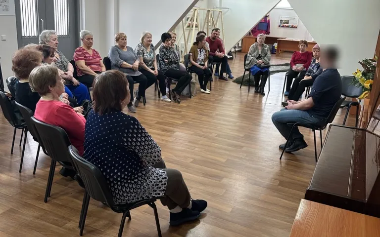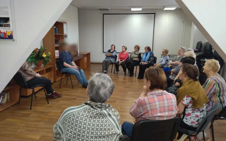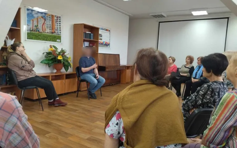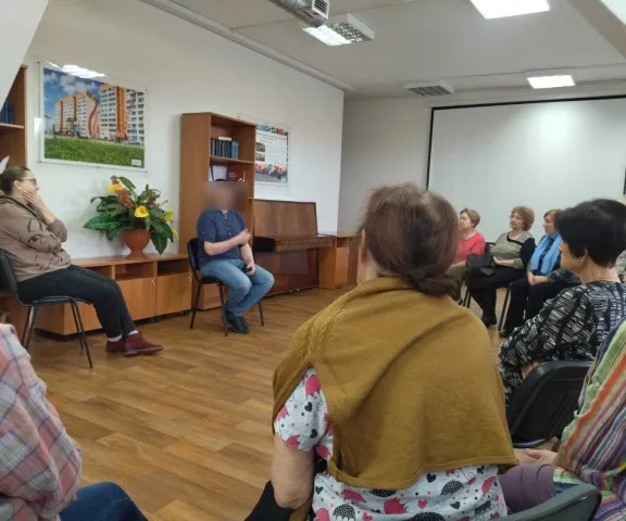 27 марта, активисты пунктов плетения маскировочных сетей ТОС «Матрёшкин двор» встретились с участником СВО в ресурсном центре общественных объединений Кировского района, ул.Петухова, 95/1.