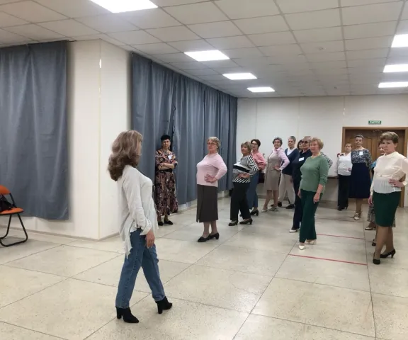 С такого призыва начала сегодня занятие по дефиле Татьяна Ремизовская для слушателей 10 группы Студии стиля «Элегантный возраст» в Советском районе.