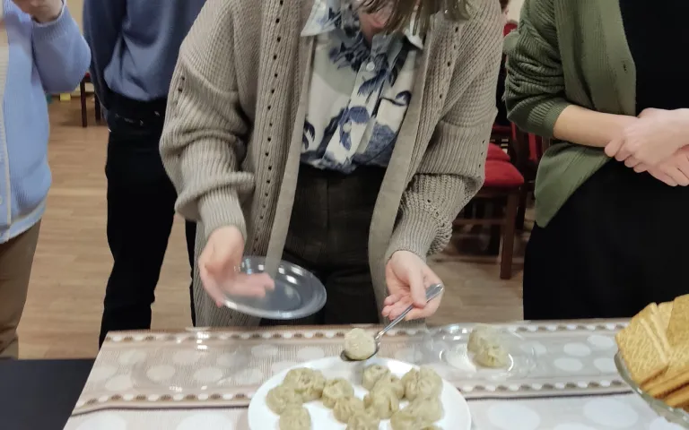 Поэтому после экскурса в историю перешли к изготовлению этого белого праздничного блюда. Вместе с Ларисой Буянтуевой в Городской межнациональный центр приехал шеф-повар Дмитрий Михалев. Вместе они провели мастер-класс по раскатыванию, правильной лепке и защипыванию маленькой «юрты» специально для гостей Сагаалгана! Участники встречи от души были благодарны и за интересный рассказ, и за полезные навыки, которые узнали в этот день.